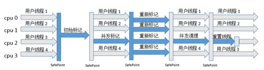 CMS,用于老生代,采用标记-清除算法,回收时混合使用单/多线程,标记时需要暂停其他线程,清除时不需要暂停其他线程。注重最低的 STW。