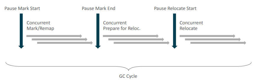 - 并发重分配:在上面的阶段过后,ZGC 就会将重分配集里存活的对象复制到新的 Region 上。