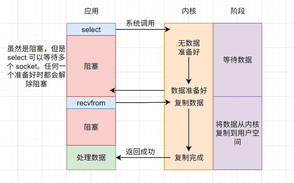 方法就会返回,线程就可以处理这些事件,事件的例子有如新的连接进来、数据接收等。
